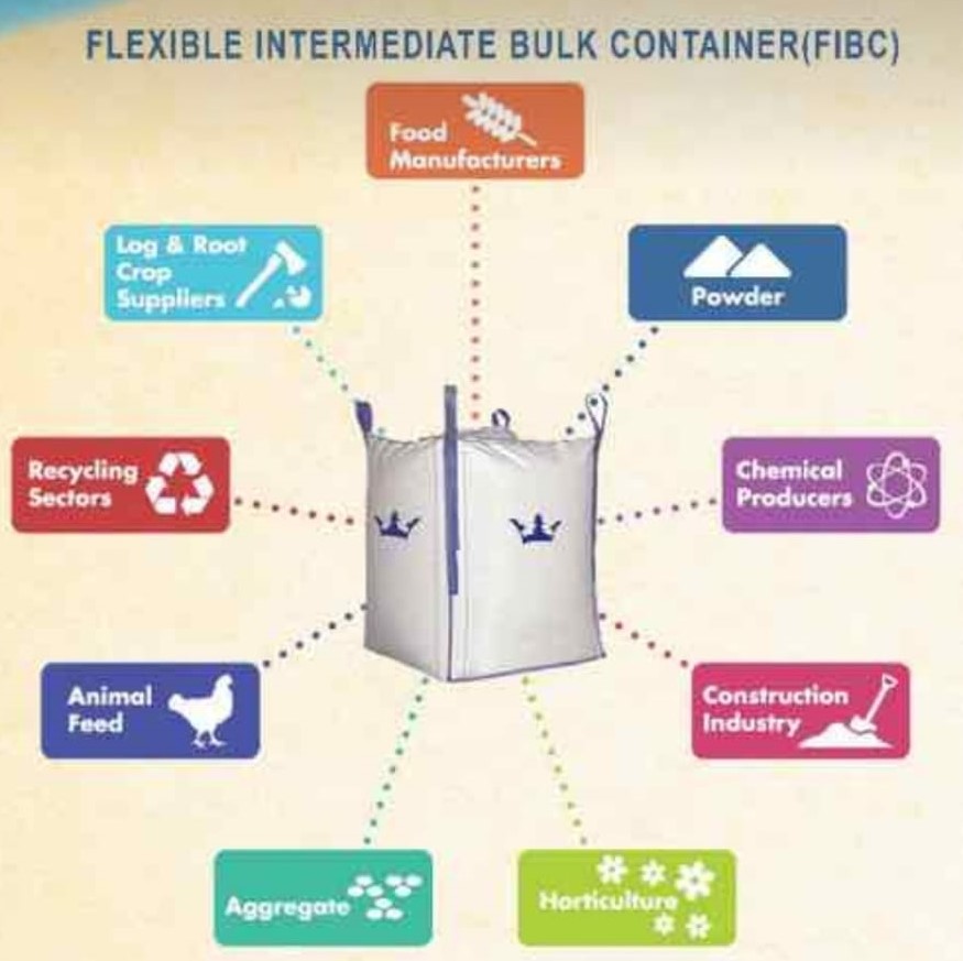 IBC (Flexible Intermediate Bulk Container) also known commonly as Jumbo bags, Bulk bags, Tote bags etc. are an efficient and economical way of packing dry bulk material. FIBC come in various shapes, sizes, capacity and specification depending on the product to be packed in them. The common range of FIBC varies from 500kg to 2.5 tons.